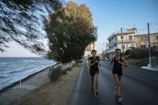 Nina de Winter geeft hardlooptraining aan oorlogsvluchtelingen op Lesbos